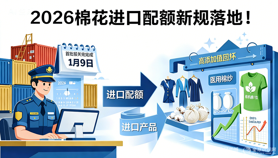2026年度棉花进口关税配额新规已正式实施,创新采用“自动获额+多次申领”模式,审核周期缩短至5个工作日。据推算,首批新配额报关业务将于1月9日(本周五)完成落地。在当前国内棉价连续上涨、高附加值棉制品出口回暖的行业背景下,新规的落地将进一步提升棉纺企业原料采购灵活性,助力企业对冲市场波动风险,推动纺织产业高质量发展。